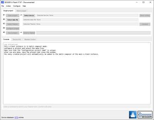 A batch project can be configured in U-Flash, which is part of the Flasher Software & Documentation Pack. The batch composer can be accessed by clicking on the Batch project tab in U-Flash.