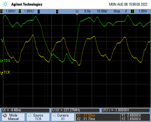 The following pictures show oscilloscope measurements of trace signals output by the "Tested Hardware" using the example project. All measurements have been performed using a Agilent InfiniiVision DSO7034B 350 MHz 2GSa/s oscilloscope and 1156A 1.5 GHz Active Probes. If your trace signals look similar on your trace hardware, chances are good that tracing will work out-of-the-box using the example project. More information about correct trace timing can be found at the following website.